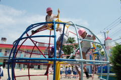 幼児期は、運動機能が急速に発達し、多様な動きを身に付けやすい時期です。しかしながら、体力や運動能力は少しの運動で身に付くものではなく、毎日の運動の積み重ねが大切です。本園では遊びを通して、基本的な動き(1)の発達と健全な体力づくりを目指しています。
